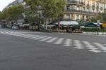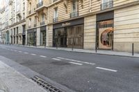 The break of day reveals the classic architecture and urban design of a Parisian neighborhood, with its storefronts, roads, and infrastructure providing an insight into city life in Europe.