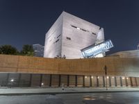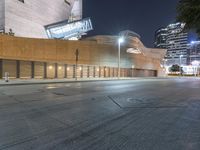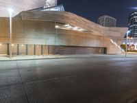 A view of downtown Dallas with its Brutalist architecture, glass walls, metal and concrete surfaces, and the reflection of the artificial light in the clear night sky.