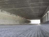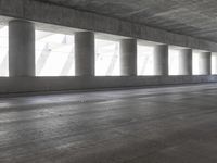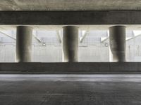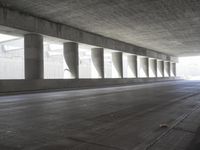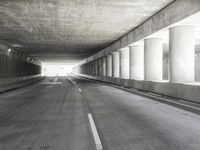 A monochromatic view of a Brutalist architecture building in Los Angeles, California, USA. Featuring a concrete bridge, metal beam, guard rail, chain link fence, and a clear sky above.
