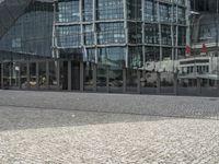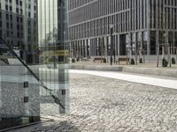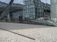 A glimpse of Brutalist architecture in Berlin, Germany, as seen from the cable-stayed bridge. Concrete, steel, glass, and other materials make up the modern design of the high-rise buildings and skyscrapers, as well as the cobblestone roads and public spaces, in this metropolitan metropolis.