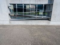A top down view of the business district in Kaohsiung, Republic of China, showing the hard shadows of the elevated office buildings and pavers in this bustling city in Formosa.