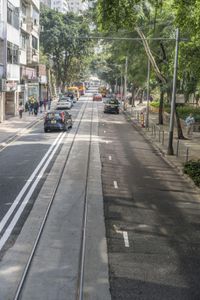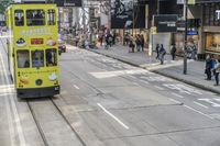 A bustling city street in Hong Kong, with yellow taxis and public transportation vehicles driving along the high lanes of the asphalt road.