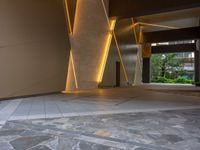 The bright artificial light of the city illuminates a paver-lined shopping mall in the heart of Tokyo, Japan. A straight road lined with store fronts reveals the bustling city life in the modern urban environment.