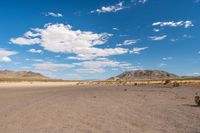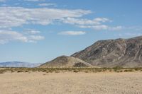 Scenic view of the California desert, with mountains, open spaces, and sandy roads.