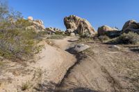 A scenic road leading through the sandy desert landscape of California, USA.
