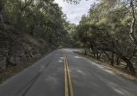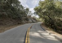 A winding, two-lane rural road in California, USA, stretches out between woody plants and endless fields, cast in the shadow of towering clouds. The asphalt surface of the highway provides a smooth transport path for travelers in this stunning landscape.