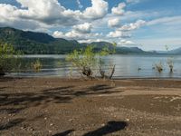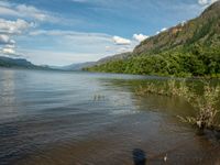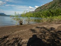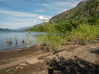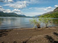 A stunning view of the California landscape, showcasing majestic mountains, an azure lake, and abundant vegetation under the clear blue sky. This scenic location in the USA offers open spaces, dirt roads, and off-road tracks for nature enthusiasts to explore and enjoy.