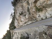 A winding road through the mountain pass surrounded by a guard rail, overlooking a beautiful landscape of rolling hills and yellow tree vegetation in the state of California, USA.
