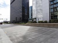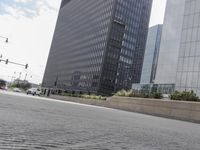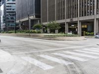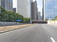 A view of a highway with an armco barrier in the foreground and the city skyline in the background, in Chicago, Illinois, USA.