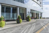 The bustling downtown of Chicago, Illinois, USA, is a magnificent mix of modern architecture, high-rise buildings, residential areas, public spaces, mixed-use properties, and open ocean views. The cityscape features a clear sky with clouds, a tree-lined curb, and an asphalt road leading straight down the road.