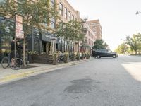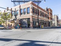 A bustling city street in Chicago, Illinois, showcasing the diverse mix of residential and commercial buildings in this vibrant neighborhood.