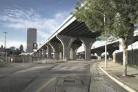 View of the metropolitan area of Chicago, Illinois, USA, with its roads, bridges, highways, factories, parking lots, and other infrastructure elements illuminated by the sunlight of a bright day.