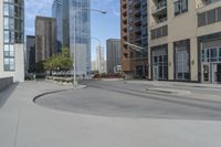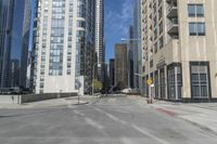 A view of the bustling city of Chicago, Illinois, USA, showing a mix of residential and business areas, as well as modern and historic buildings in a metropolitan area. Cars line the asphalt roads as the sun shines on a clear day, illuminating the public space and sky-reaching skyscrapers, forming a dynamic cityscape.
