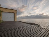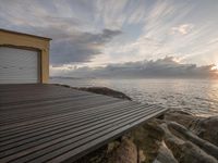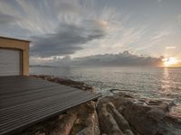 A stunning coastal landscape at dawn, showcasing the beauty of nature and the ocean. The city skyline can be seen in the distance as the sun rises, creating a serene and peaceful atmosphere.