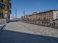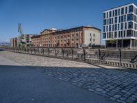 This stock photo captures the essence of city life in Europe, specifically in Germany. The image showcases a residential area with a well-maintained road and modern architecture. The clear sky above casts a hard shadow on the cobblestone pavement, adding to the urban design of the area. In the foreground, there is a storage facility or warehouse, providing storage space for various goods. The combination of the architectural elements, asphalt road, and the storeroom creates a vibrant and bustling city scene. This photo is perfect for illustrating urban life and architecture in Germany.