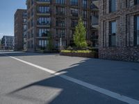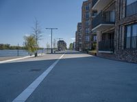 This stock photo captures the essence of city life in Germany. The image showcases a modern residential area with sleek architecture and open spaces. The road stretches into the distance, casting hard shadows under the clear sky. The urban design and asphalt surface create a visually striking scene, while the 1/4角 perspective adds depth. In the background, a pier extends into the ocean, adding a touch of coastal charm. This photo perfectly represents the combination of urban and natural elements found in Germany's cities.