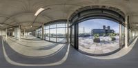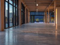 A profile view of a straight road leading through the busy city, casting hard shadows on the concrete surface on a sunny day in an urban setting with open spaces and urban design.