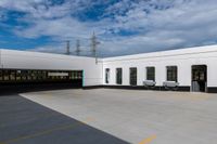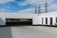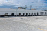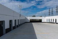 A view of the urban landscape in Toronto, Canada, showcasing the city life amidst the concrete surfaces and open spaces. The image captures the straight road leading through the city, with buildings casting hard shadows on the ground on a sunny day. The parking deck and parking garage can be seen, reflecting the urban design of the area.