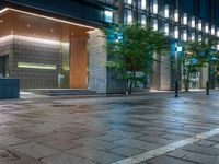 The city of Tokyo, Nihonbashi, illuminated at night by the artificial light of office buildings, street lights, and cars. The wet pavement reflects the light, giving the city a unique urban design.