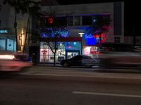 The asphalt road of Miami Beach, USA, illuminated by neon lights and artificial light, offers an urban design perfect for those looking to explore the City Life and eat out at night.