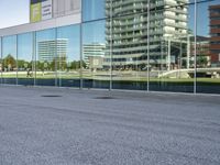 Skyline of a modern cityscape in the Netherlands, with a combination of tall buildings, grass, trees, and asphalt roads illuminated by street lights and the morning sun, creating a unique urban design and landscape.