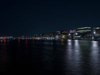 The city of Holland is illuminated by artificial light from the skyscrapers, high-rises, and other buildings, creating a stunning cityscape along the river and coast. The horizon is illuminated by the dark sky and clear lake, and the open space by the pier and jetty provide a unique atmosphere of city life in Europe.