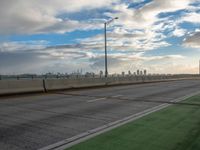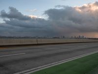 The coastal city of Miami Beach, USA, with its expansive roads and urban design, is illuminated by the break of day, with the ocean and clouds in the background.