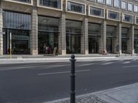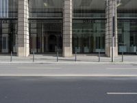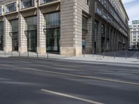 A view of Friedrichstraße in Berlin, Germany, showing modern architecture, urban design and a range of businesses. The combination of concrete, asphalt, buildings, houses, windows, columns, curb, public space, and trees create a vibrant cityscape and metropolitan area that is representative of city life in Europe.