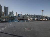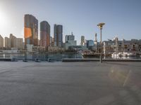 A stunning view of the city skyline at dawn, showcasing the modern architecture, skyscrapers, and open spaces.