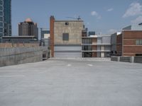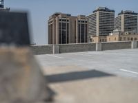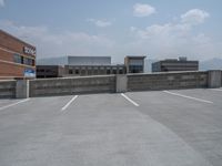 A concrete road leads down the profile of a parking deck in Salt Lake City, USA, on a cloudy day.