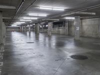 A view of Los Angeles, California, USA, with its concrete streets, metal building walls, and open public spaces illuminated by artificial light in the evening.