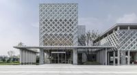 A stunning view of the city at dawn in Chongqing, China, with its modern architecture and skyscrapers reflecting on the calm water of the lake.