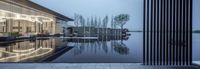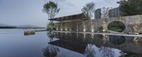 Cityscape at Dawn with Reflection on Water