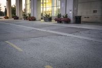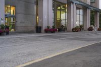 A stunning view of the city of Toronto at dawn with modern architecture, asphalt roads, and a beautiful yellow leaf-lined street.
