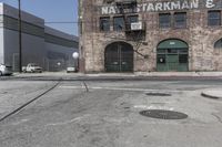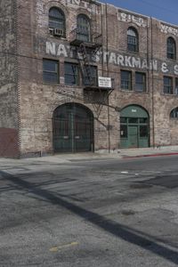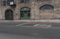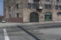 A view of the urban landscape in Los Angeles, California, USA, showcasing the architecture, city roads, and buildings. This photo captures the bustling atmosphere of the city, with its asphalt roads, brick walls, and urban infrastructure.