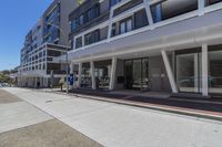 A stunning cityscape featuring a sleek and modern office building against a clear sky.