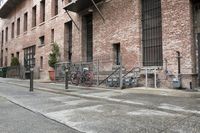 A view of the bustling city of Pasadena, California, USA, showcasing its architecture, buildings, and roads. The photo captures the vibrant atmosphere of the city during the day, with its concrete structures, arches, and windows. In the foreground, there are incidental people, including a cyclist riding by. The brick walls of a restaurant and a cafe add to the charm of the scene, while pot plants and a backplate of a bicycle create a lively ambiance. The image also showcases the retail and food and drink industry of Pasadena.