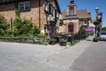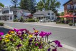 A beautiful residential area in a suburban neighborhood with well-maintained houses and lush green gardens, located in a bustling city.