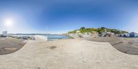 Aerial view of the city of Wellington, New Zealand, showcasing its beautiful architecture and coastal location with the ocean and sea in the background. The road surface and bridge connect the city to the surrounding areas, while the clear sky and clouds create a scenic atmosphere.
