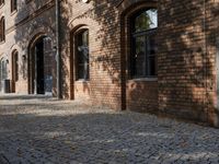 A beautiful day in Berlin, Germany showcasing the classic architecture of the town, with its historic buildings, brick walls, and cobblestone alley-ways.