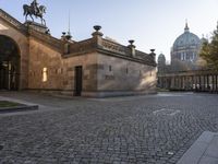 A beautiful example of classic architecture in the city of Berlin, Germany, with its stunning facade and cobblestone road surface.