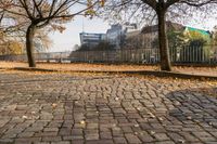 A beautiful view of the classic architecture in Berlin, Germany on a sunny autumn day. The cobblestone road and urban surroundings add to the charm of this city.