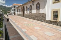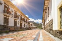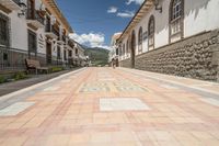 A picturesque residential area in Ecuador showcasing classic architecture and cobblestone roads under the sunny sky.