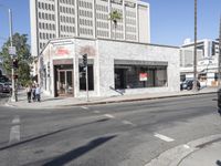A classic architecture building with brick and glass walls in the art district of Los Angeles, California, USA.
