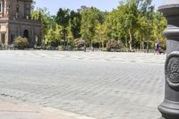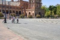 A stunning view of the classic architecture in Seville, Spain, showcasing a beautiful cityscape with a clear sky and a charming mix of buildings, castles, and monuments.