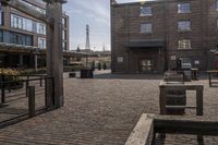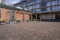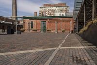 Beautiful brick buildings and cobblestone roads in the historic art district of Toronto, Ontario, Canada.