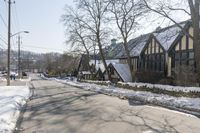 A residential area in Toronto, Canada, showcasing classic architecture and tree-lined streets on a snowy winter day.