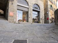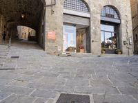 Beautiful classic architecture in Tuscany, Italy, with a view of a charming village and cobblestone road.
