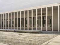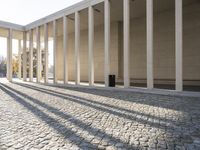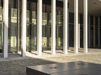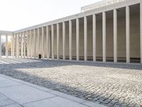 A line of sandstone brick buildings with a modern facade of glass and metal in the business district of Berlin, Germany.
