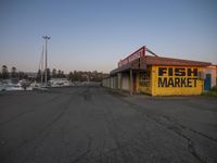 A stunning view of a coastal city at dawn, with the asphalt road leading towards the open space and the beautiful landscape. The facades of buildings reflect on the calm ocean water, creating a serene atmosphere.